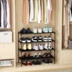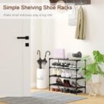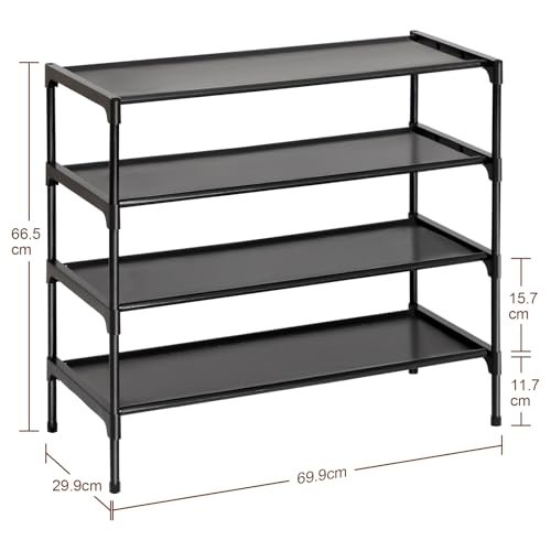 LOAKEKEL Shoe Rack. Non-Woven Fabric Portable 4 Tier Shoe Organizer. up to 15-20 Pairs. Stackable Shoe Storage Shelf for Closet. Entryway. Space Saving HSRF004BK