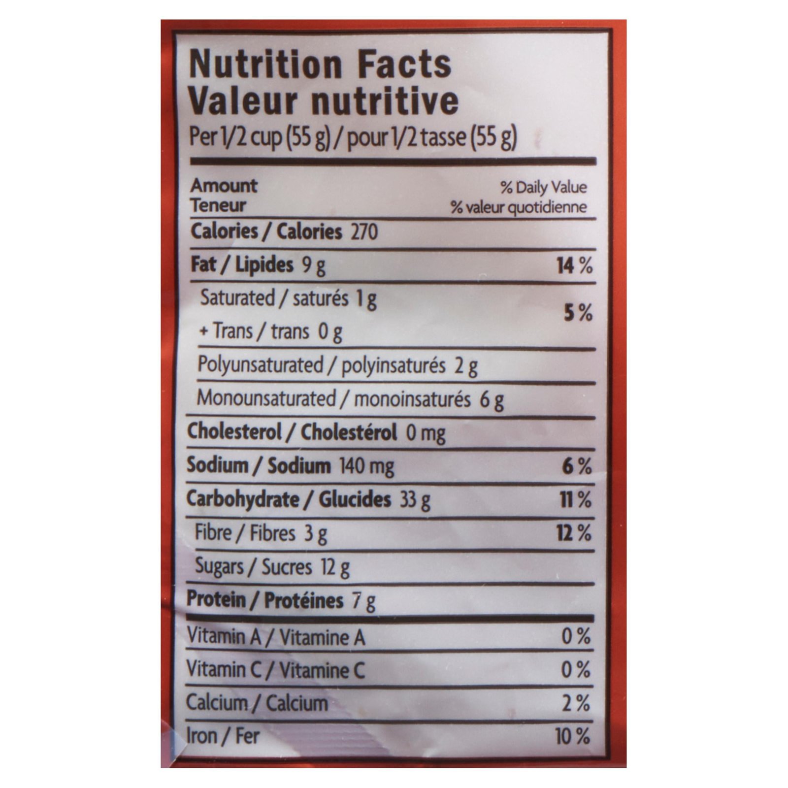 | Fabric Property | • 3 g of fibre • 24 g of whole grains • 7 g of protein • Per 1/2 cup serving |