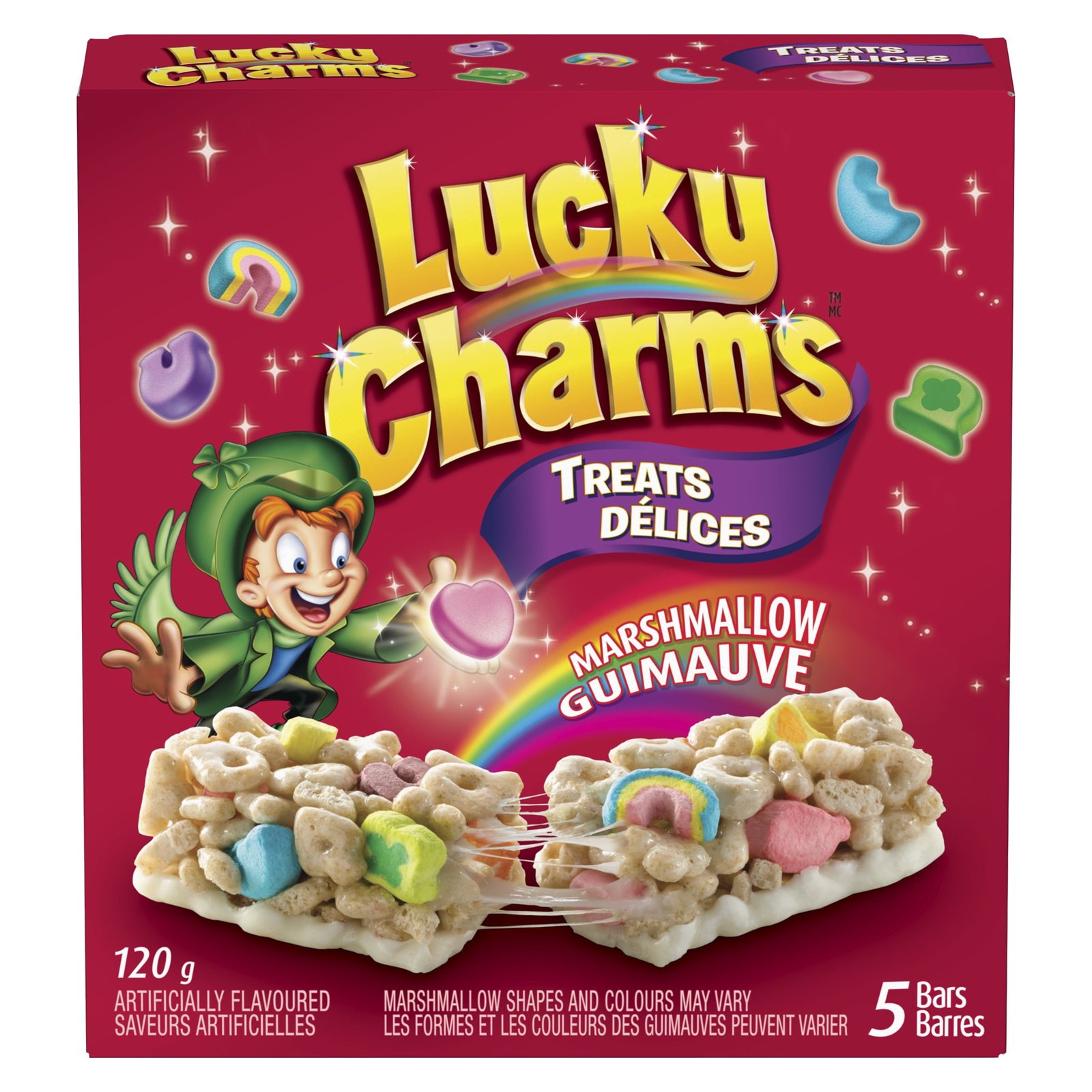 Try your favourite cereal in its very own snack bar! Made with the delicious Lucky Charms cereal. smart snacking has never tasted so good! These treat bars are perfect to eat anywhere and at any time! Perfect for a snack at an event or to satisfy a sweet craving!• Also try Golden Grahams and Cinnamon Toast Crunch in a snack bar format!