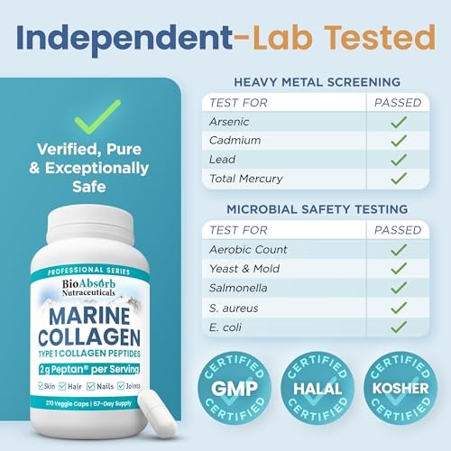 - WHY BIOABSORB MARINE COLLAGEN? Manufactured by means of a unique enzymatic hydrolysis process. our Type 1 collagen peptides are broken down into smaller peptides that are easy for the body to absorb and put to use. Ideal for pescatarians or anyone with intolerance to beef or pork protein. it is also Halal and Kosher.