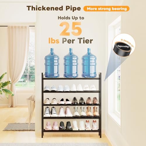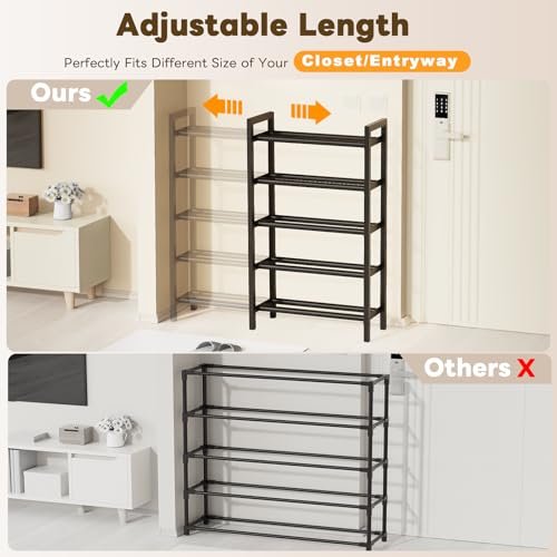 Mavivegue Expandable Shoe Rack. 5-Tier Adjustable Shoe Organizer. Shoe Racks for Entryway. Closet. Front Door