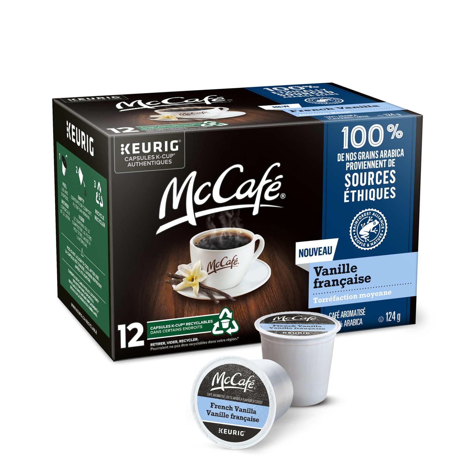 • QUALITY: McCafé French Vanilla coffee is 100% sourced from Rainforest Alliance Certified farms. which means our beans are grown and harvested with great respect and care for people. wildlife. and the environment. Plus. this product is proudly roasted and blended in Canada