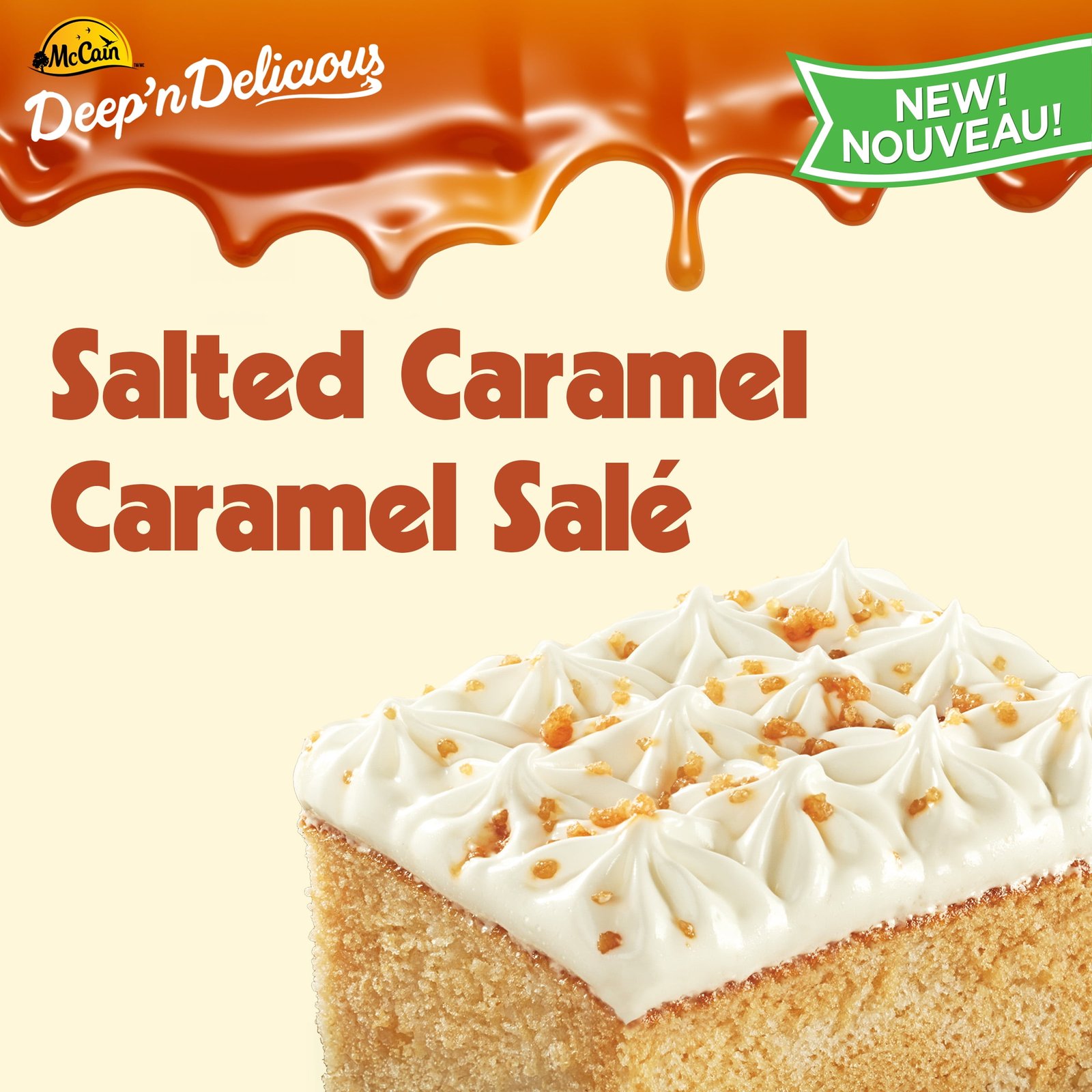 McCain® Deep’n Delicious® Salted Caramel Cake. Made in Canada from domestic and imported ingredients. 510g
