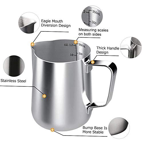 • Premium Milk Steamer Jug – Made of 304 Stainless Steel with stylish look note. please keep the espresso coffee cup dry after use and avoid to use it for salt. brine. sweat. seawater. soil.