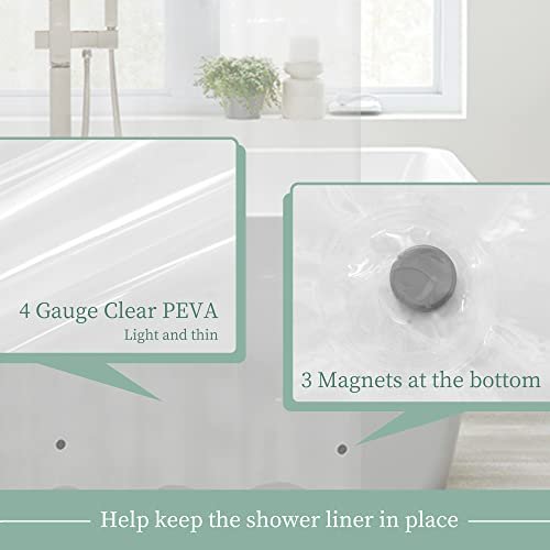 • *Qualified: High quality PEVA shower curtain liner is a good choice for the person who requires heavy duty liner for bathtub. Made of clear plastic. the liner plays a function to better hold back water in a shower. Can be used as a liner or curtain simply