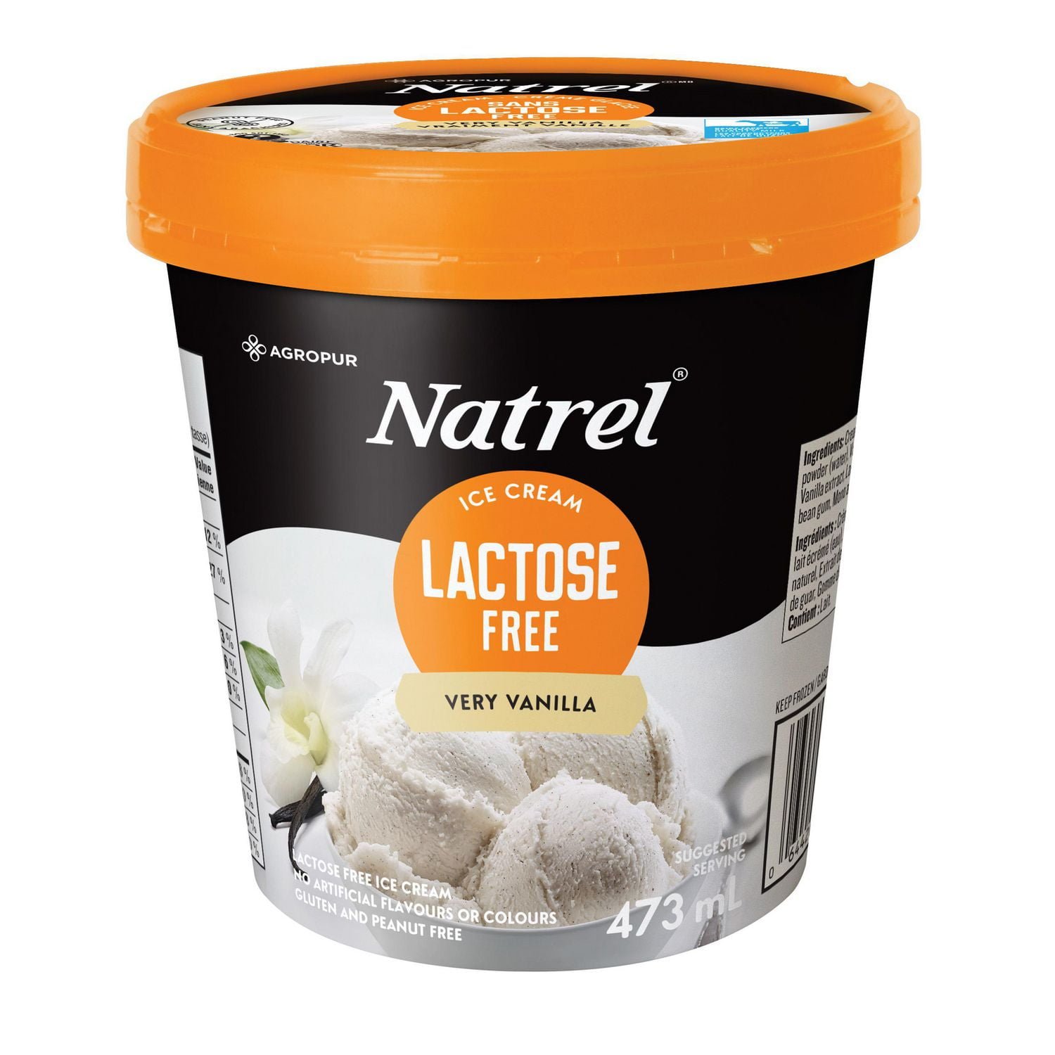 | Ingredients | Cream. Sugar. Skim milk powder (water). Flucose. Vanilla bean seeds. Natural flavour. Vanilla extract. Lactase. Carrageenan. Guar gum. Locust bean gum. Mono and diglycerides. Contains milk. May containpeanuts and/or other tree nuts. |