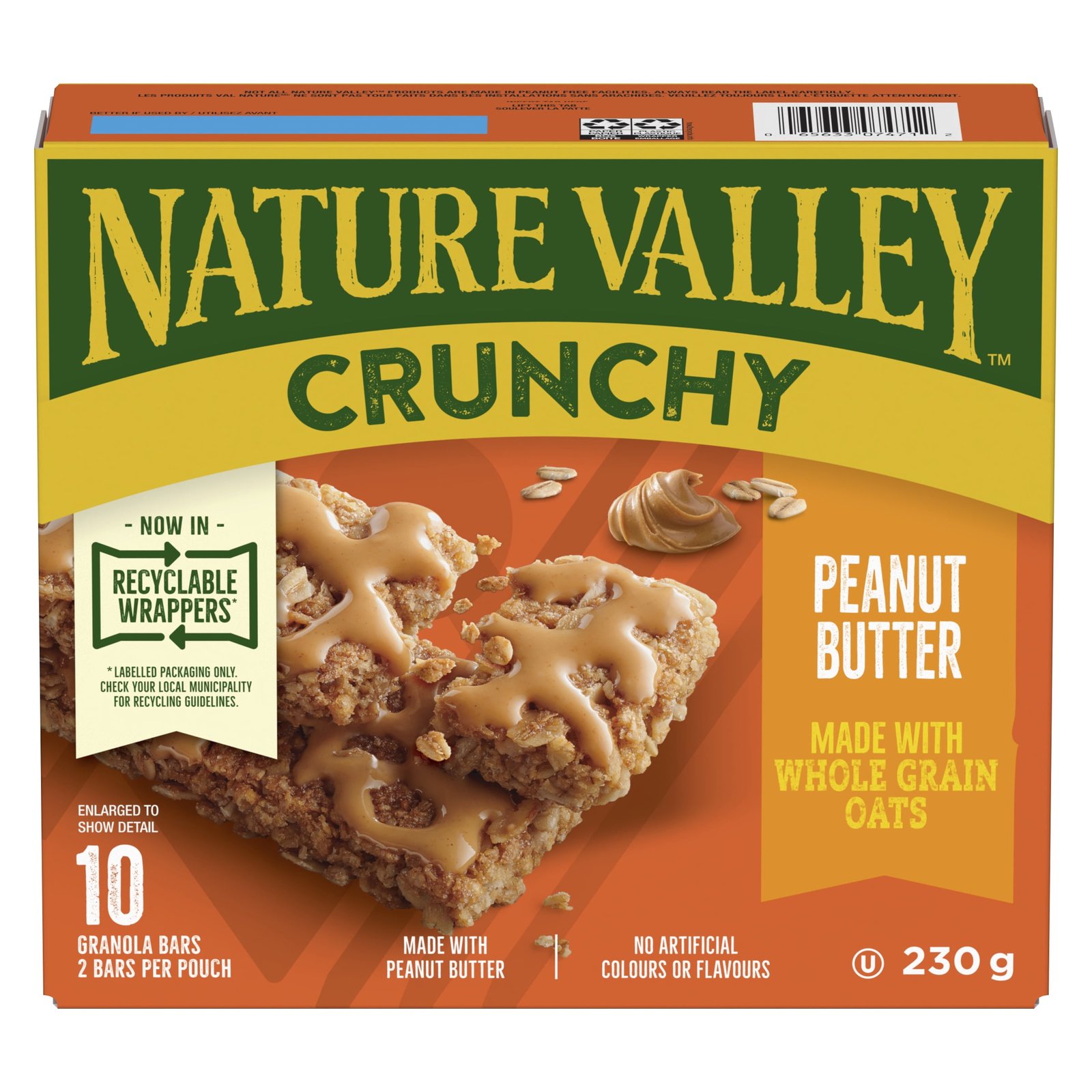 | Fabric Property | • CRUNCHY GRANOLA BARS: Nature Valley Crunchy Peanut Butter Granola Bars combine delicious whole-grain oats with creamy peanut butter for a breakfast or afternoon snack the entire family will enjoy • BREAKFAST SNACK: Made with whole grain oats • PERFECTLY PORTABLE: Easy bars for snack time or an on-the-go invigorating treat; Perfect as a part of breakfast. for the pantry. snack box. and hiking trail • REAL INGREDIENTS: Hearty whole grain oats with no artificial flavours or artificial colours • CONTAINS: 46 g. five ct. 10 bars |