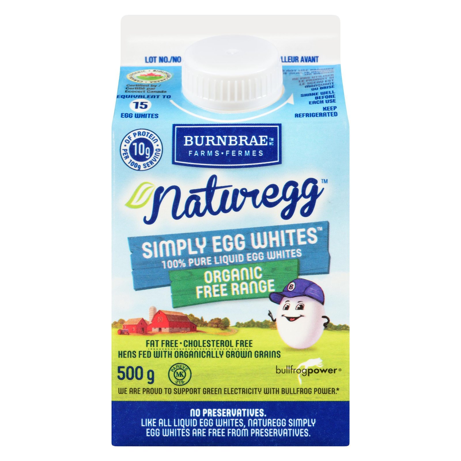 Naturegg Simply Egg Whites Organic are just like Simply Egg Whites. but they are produced from free range hens that have access to the outdoors (weather and environmental conditions permitting). fed an organic multigrain feed that is grown on land that has had no herbicides. pesticides or preservatives used on it in 3 years. They are produced in accordance with the Canadian Organic standards and certified Organic by Ecocert Canada.