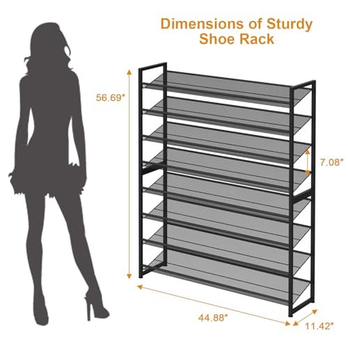 Neycil Large Shoe Rack 8 Tier. Heavy Duty Metal Shoe Organizer Shelf. 4-Tier Stackable Shoe Storage Rack for Closet Front Door Entrance. Up to 50 Pairs. 44.8 Wx11.4 Dx56.7 H (Black. 8 Tier)