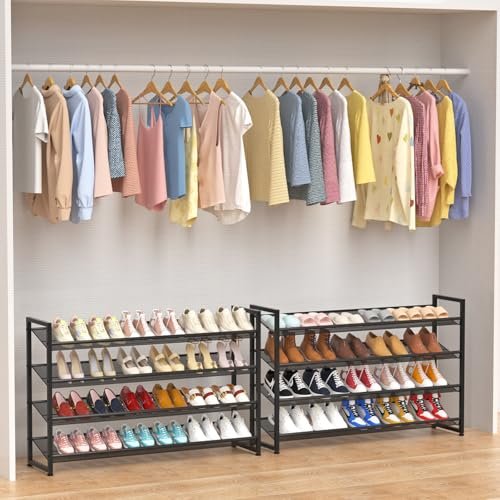 Heavy Duty Metal Shoe Organizer Shelf. 4-Tier Stackable Shoe Storage Rack for Closet Front Door Entrance. Up to 50 Pairs. 44.8 Wx11.4 Dx56.7 H