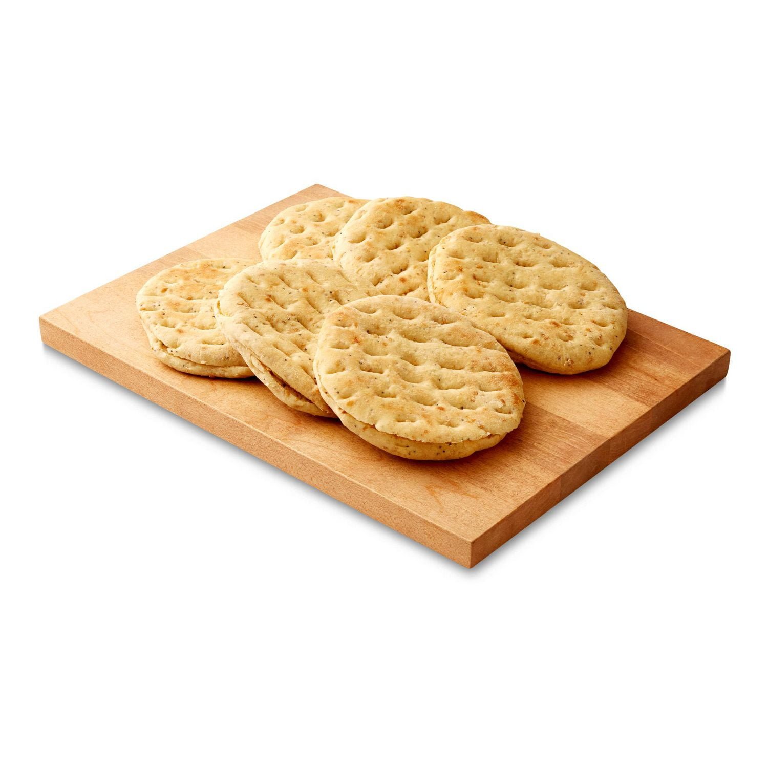 Our whole grain bread rounds are the perfect base for sandwiches (they’re pre-sliced to save you time!). easy pizzas or for dipping. With their savoury everything flavour mix (think: garlic. onion and poppy seeds). our yummy snack breads are a carb you can feel great about eating. They are low in fat and saturated fat. cholesterol-free. GMO-free. and a delicious source of fibre and iron.