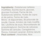 | Ingredients | Modified Milk Ingredients. Sugar/Glucose-Fructose. Wheat Flour. Concentrated Skim Milk. Coconut and Palm Oils. Dextrose. Corn Flour. Cocoa. ModifiedCorn Starch. Salt. Mono- and Diglycerides. Propylene Glycol Monostearate. Cellulose Gum. Carob Bean Gum. Carrageenan. Soy Lecithin. Baking Soda. Colour. Flavour. |