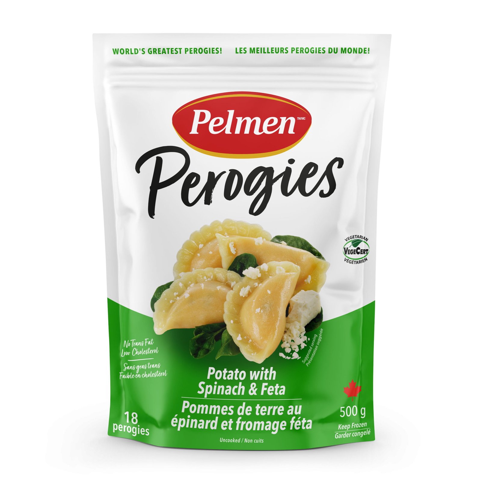 Authentically European. exquisitely prepared with fresh ingredients. conveniently quick and easy to make. Potato with Spinach & Feta perogies. Pelmen 500g bag. Unleash your inner chef with our mouthwatering perogies — the perfect choice for quick. delicious meals. Discover endless possibilities: boil or pan-fry them. pair with your favourite condiments. serve as a side. or make them the star of your table. Enjoy the homemade quality of a premium product combined with the taste and elegance of a fine dining experience. A Canadian favourite. inspired by Old World recipes.