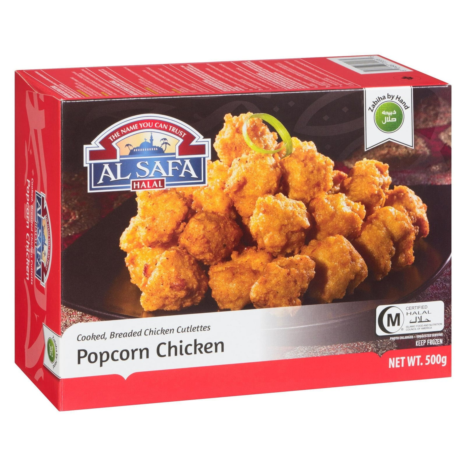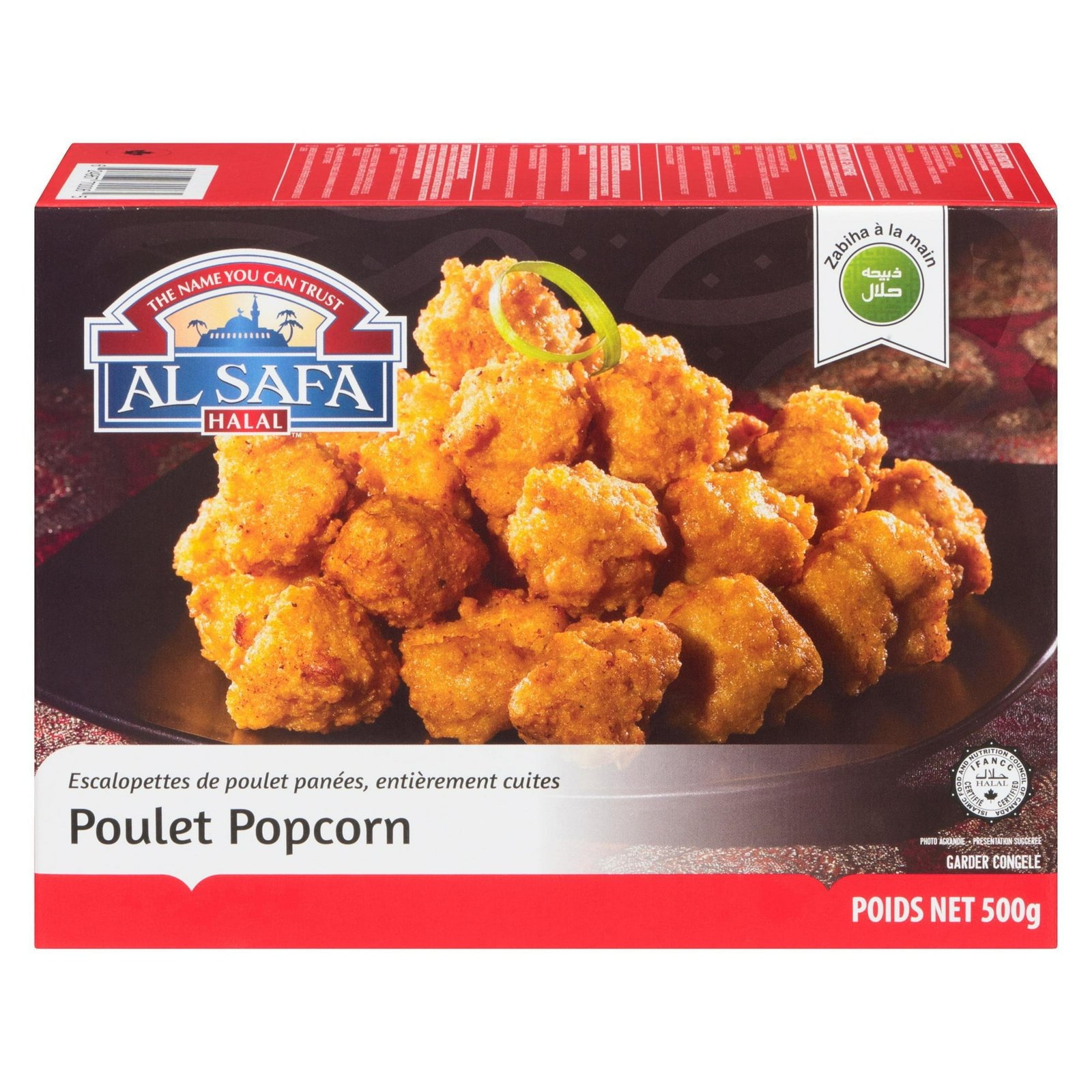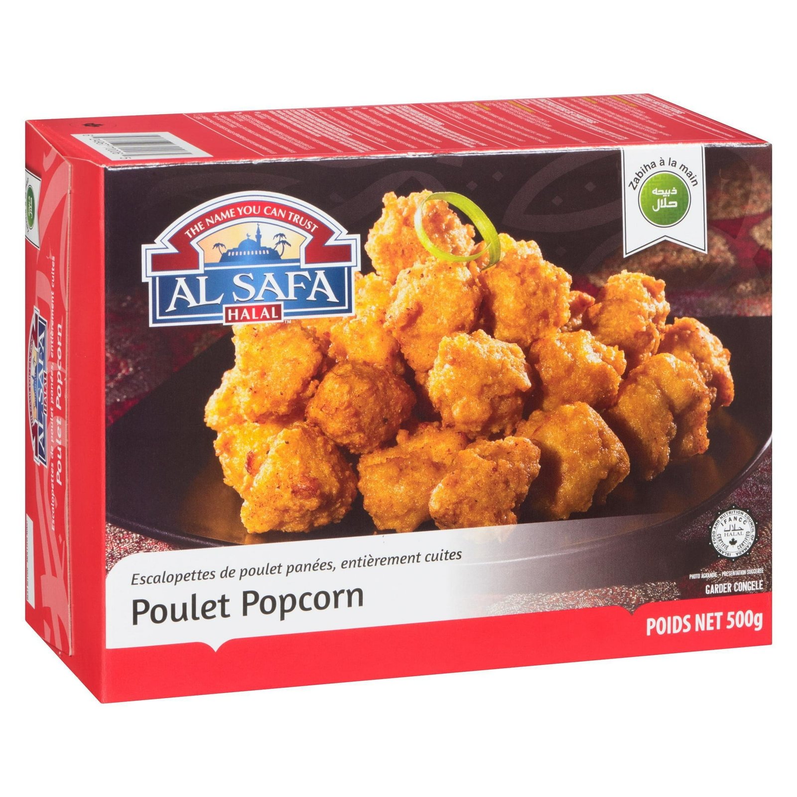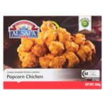 | Ingredients | INGREDIENTS: Halal Chicken. Wheat flour. Water. Toasted wheat crumbs. Vegetable oil. Wheat starch. Soy protein isolate. Salt. Spices. Wheat gluten. Modified corn starch. Potassium chloride. Onion powder. Sugars (potato maltodextrin. sugar). Garlic powder. Modified palm oil. Corn dextrin. Baking powder. Modified cellulose. Baking soda. Sodium aluminum phosphate. Hydrolyzed soy and corn protein. Guar gum. Potato starch. Aluminum sulphate. Yeast extract. Flavour. Extractives of annatto. Spice extractives. Contains: Wheat. Soy. May Contain: Egg. |