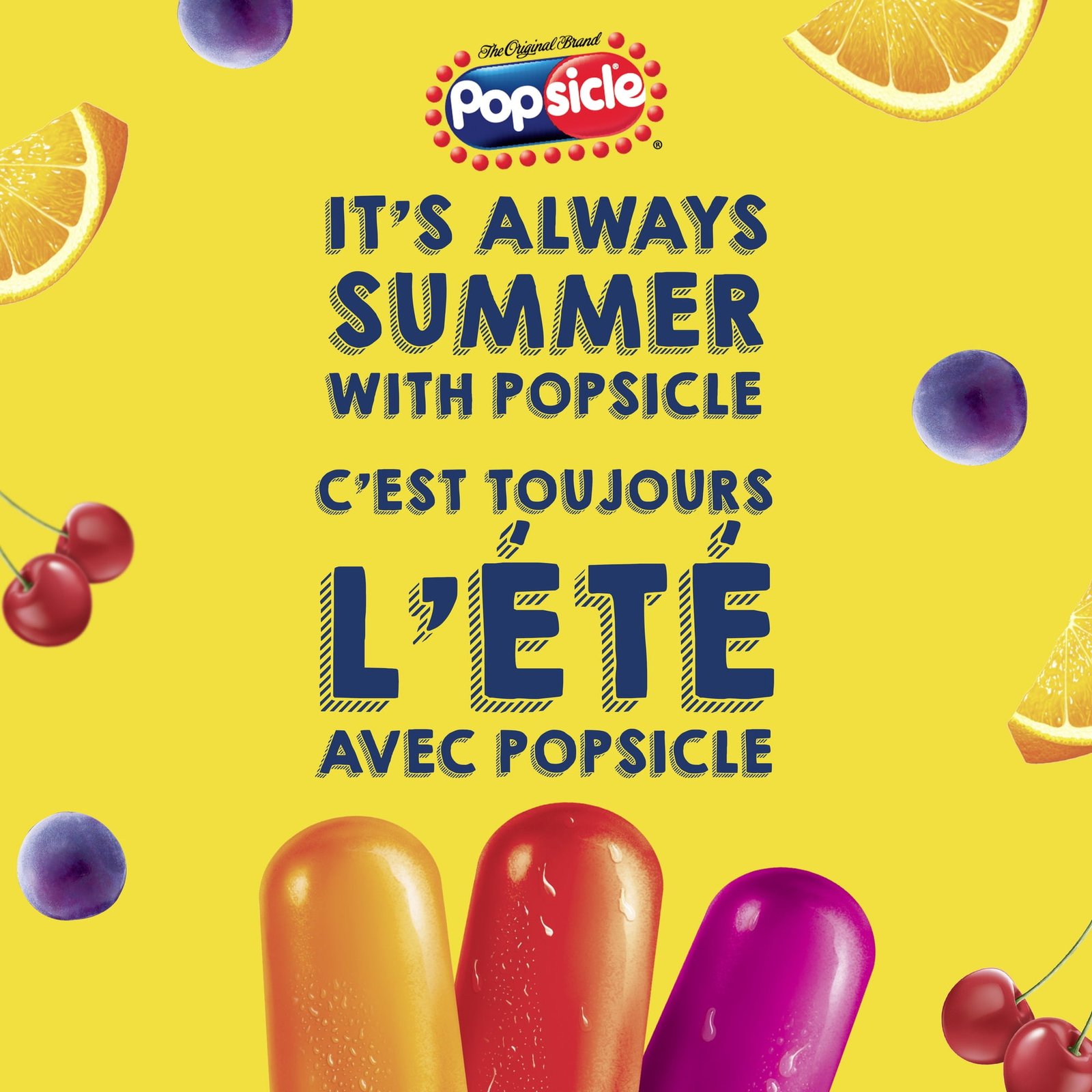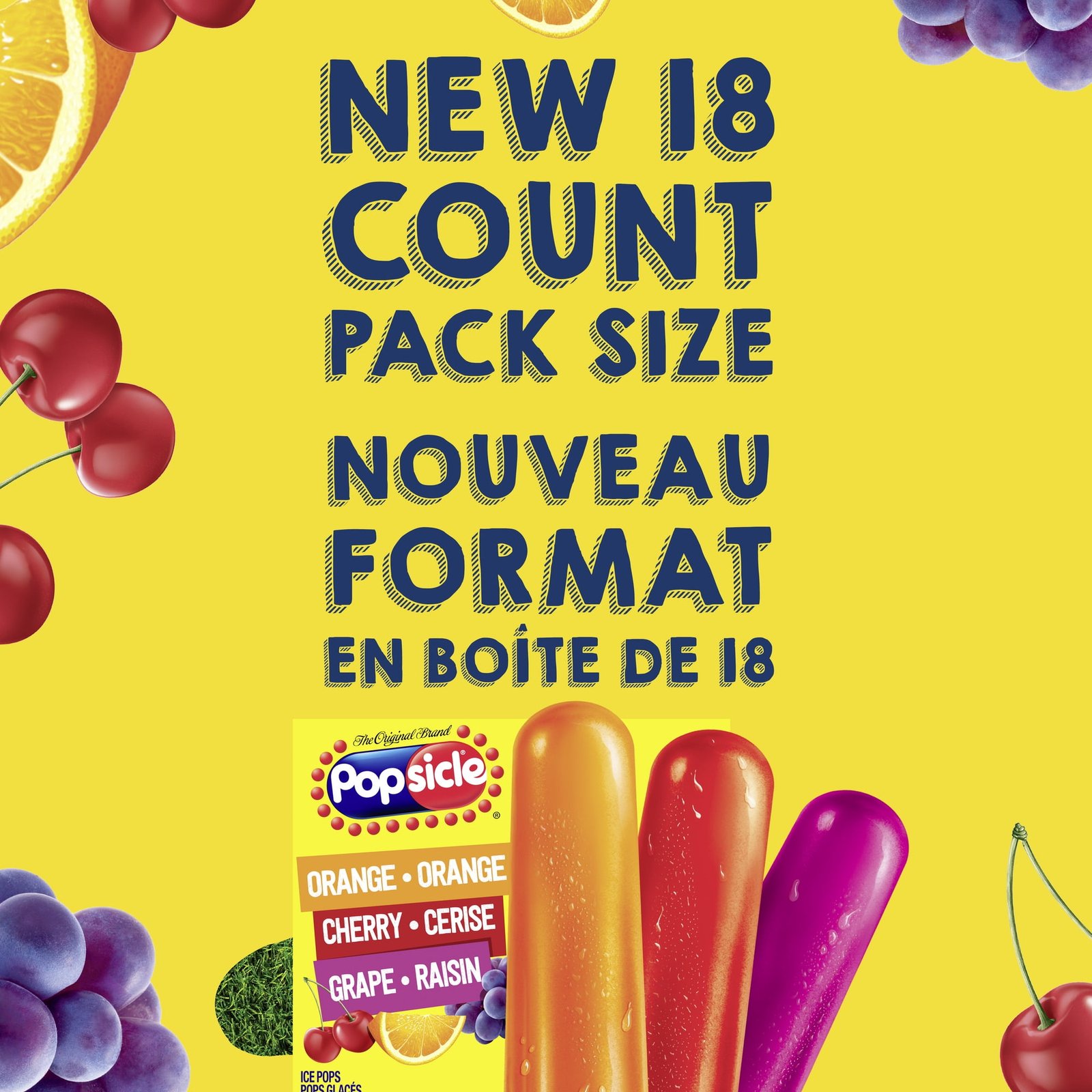 • Popsicle Ice Pops in three classic fruity flavours – orange. cherry and grape
