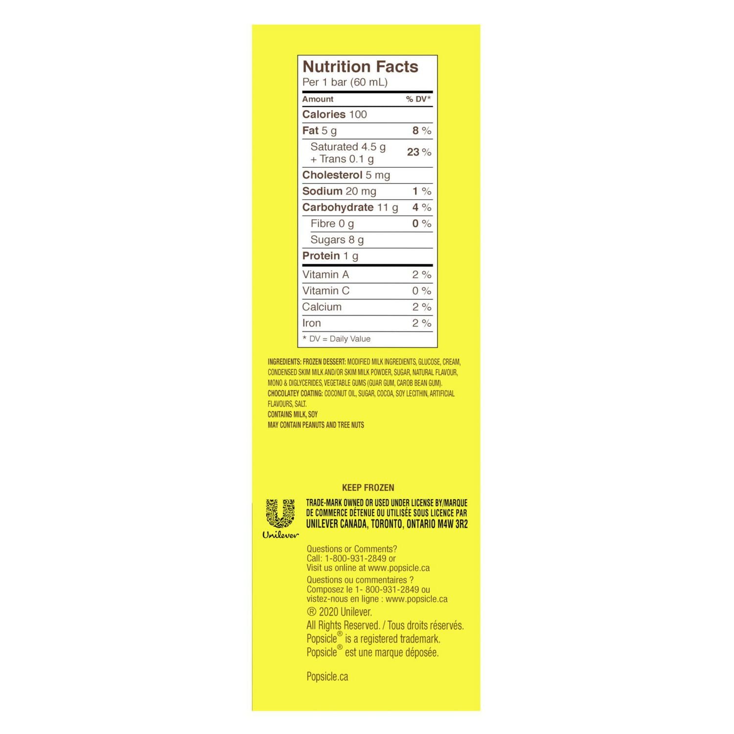 | Ingredients | FROZEN DESSERT: Milk Ingredients. Modified Milk Ingredients. Water. Sugar. Glucose. Corn Maltodextrin. Natural Flavour. Mono & Diglycerides. Carob Bean Gum. Guar Gum. Carrageenan.CHOCOLATEY COATING: Coconut Oil. Sugar. Cocoa. Soy Lecithin. Artificial Flavour. Salt. |