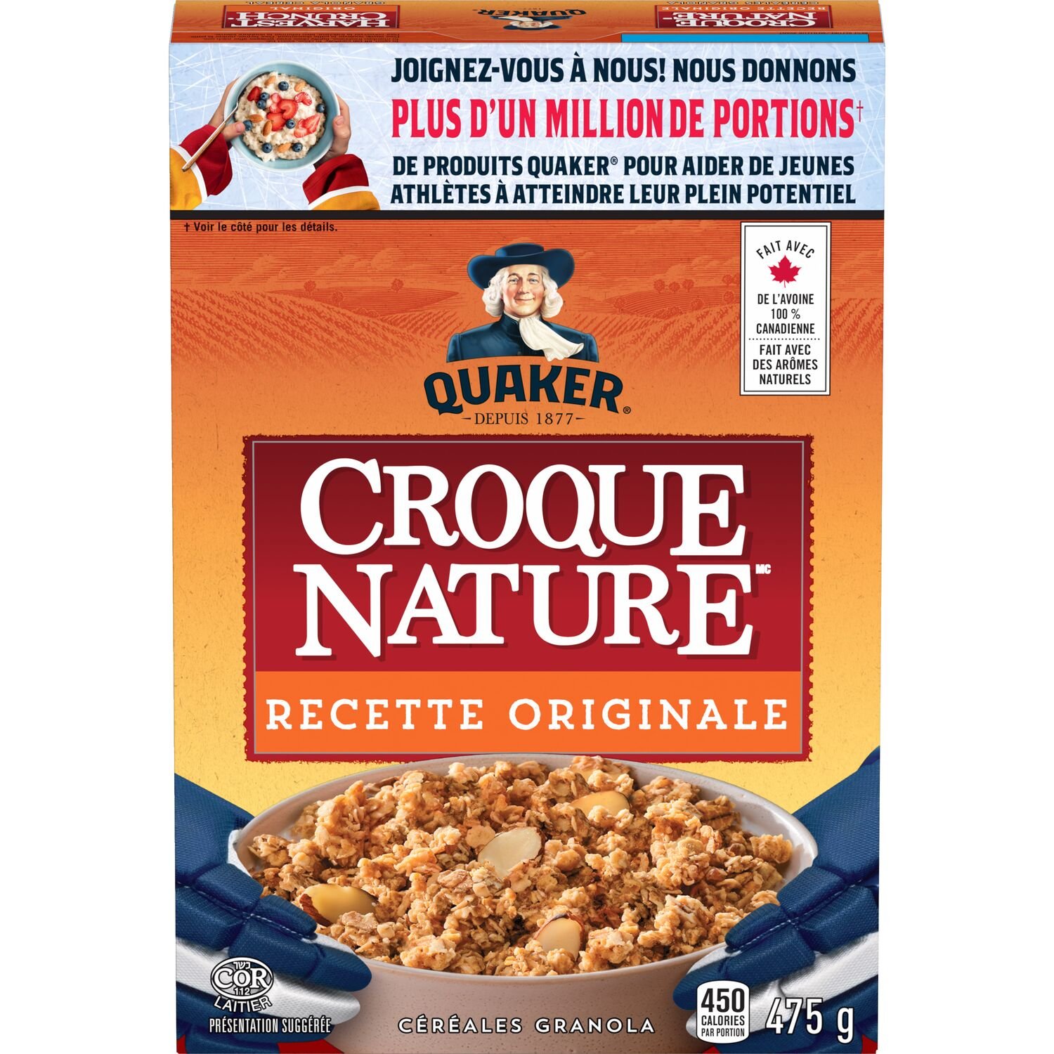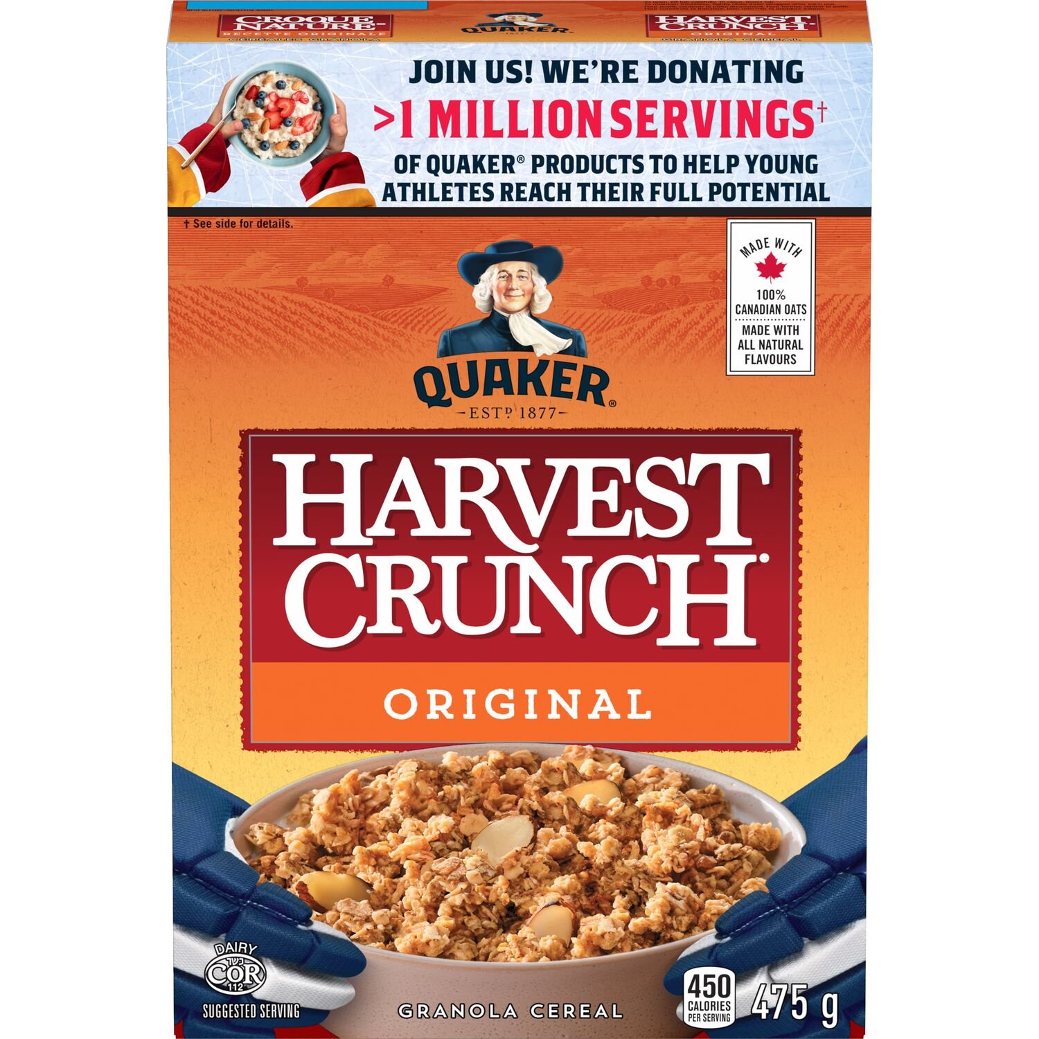 | Fabric Property | ALL NATURAL FLAVOURS — We keep it real! The delicious taste of Quaker Harvest Crunch Original granola cereal is inspired by nature. with recipes containing whole grain oats and so much more. DELICIOUS & NUTRITIOUS — Quaker Harvest Crunch Original granola cereal delivers tasty ingredients to help get you going. Try mixing it with other great ingredients like yogurt or fresh fruit for an extra boost. MIX IT UP – Not only does Quaker Harvest Crunch Original granola cereal pair perfectly with milk. it’s also an amazing addition to all kinds of easy breakfast recipes. Try mixing it with yogurt. fresh fruit. in a smoothie bowl. or as a satisfying anytime snack in-between meals. AN EASY CHOICE – Choosing a delicious cereal like Quaker Harvest Crunch Original granola cereal is always a great choice — and when it tastes this good. the choice is even easier. AMAZING FLAVOURS — Quaker Harvest Crunch granola cereal is available in a wide range of comforting flavours. including Apple Crumble. Canadian Maple. Raisin & Almond. Original. and more! |