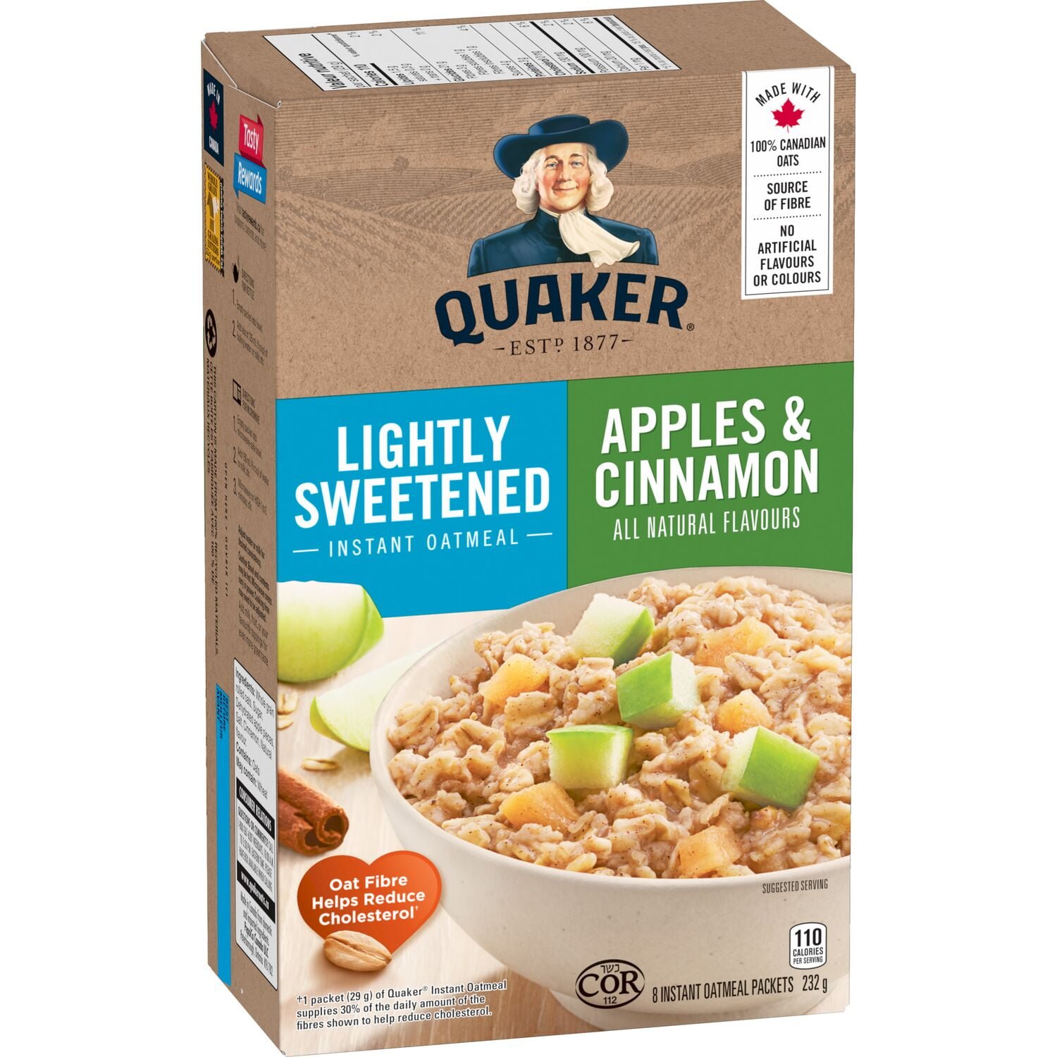 | Fabric Property | MADE WITH CANADIAN OATS — Quaker Instant Oatmeal is proudly made with whole grain oats. so you can feel good about every last bite! 22 g OF WHOLE GRAINS PER 29 g SERVING — For a fast and hearty morning packed with delicious flavour. NO ARTIFICIAL FLAVOURS OR COLOURS AMAZING FLAVOURS – There’s a Quaker Instant Oatmeal recipe for everyone in the family. We love to mix things up. and there are tons of great flavours to explore. |