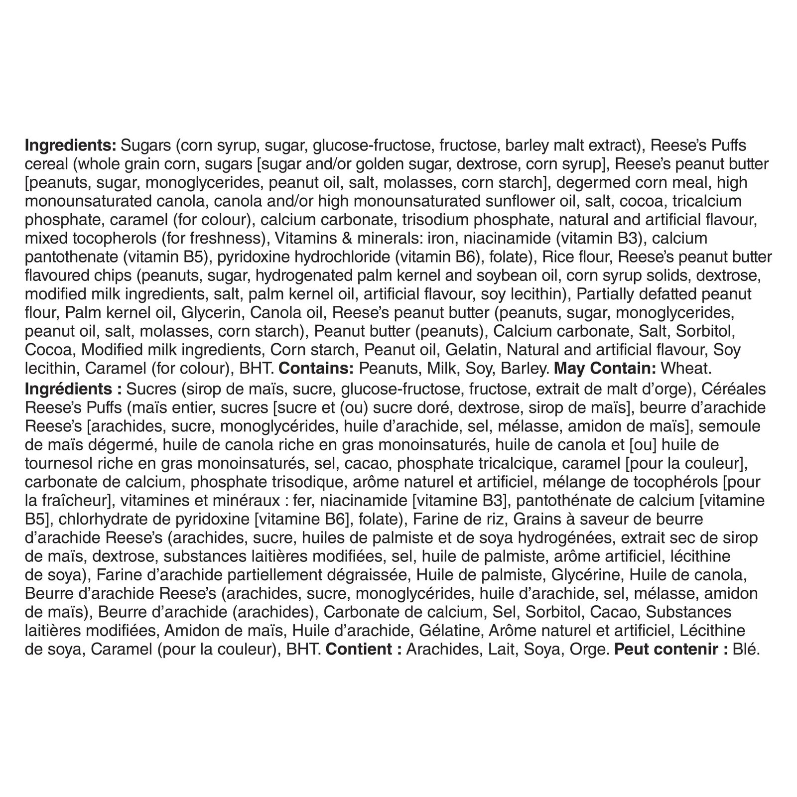 | Fabric Property | • Made with real Reese peanut butter • Naturally and artificially flavoured • Individually packaged • Try other General Mills treat bars in many great flavours • Box contains: 5 bars |