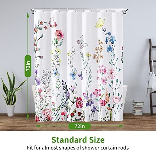 REZAYMRS Floral Shower Curtain with 12 Hooks. 72”x72” Waterproof Polyester Fabric Shower Curtains for Bathroom. Bathtubs Hotel Curtain. Machine Washable. Quick Dry (Colorful)