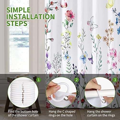 • FREE 12 HOOKS & EASY TO INSTALL: REZAYMRS shower curtains has 12 Free hooks for easily hanging this flower shower curtain. Easy to install. The clasic shower is a nice decor for shower environment.