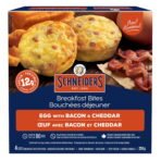 Schneiders® Egg with Bacon & Cheddar Breakfast Bites are warm. fluffy. and satisfying breakfast snacks that won’t slow you down. Ready from the microwave in just 90 seconds. breakfast bites make it easy to prepare and enjoy a delicious breakfast in almost no time at all. You can even serve them up hot from the air fryer in just 10 minutes. Perfect for busy mornings. these energizing Breakfast bites satisfy with 12g of protein per serving. They’re crafted with real eggs. onions. cooked bacon and cheddar cheese for a savoury depth of flavour without the need for heavy crusts or breading. This package of four high-quality. high-protein snacks contains no artificial colours or flavours—just real ingredients you can feel good about serving your family or enjoying on your own. Since 1890. Schneiders® brand has established a rich heritage of original and authentic recipes. using premium ingredients and taking all the time needed to honour the origin and inspiration of each recipe. Quality Never Gets Old.™Savoury Start: Delicious bacon and cheese omelette bites for an elevated but easy breakfast. Quick & Delicious: Ready in 90 seconds. these breakfast snacks are time-savers on busy mornings. Protein Powered: With 12g of protein per serving. Breakfast Bites are a satisfying start to the day. Real Food; Real Quick: Made with real eggs. onion. cooked bacon and cheddar cheese. Quality Never Gets Old™: Schneiders® — delivering authentic flavours and premium quality since 1890