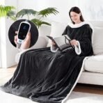 Sealy Electric Blanket Wearable with Foot Pocket. Electric Snuggle Blanket with Sleeves. Flannel & Sherpa Heating Throw with 6 Heat Settings & 2-10 Hours Auto Shut Off. 50 * 70+18. Dark Grey
