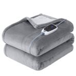 SEALY Electric Throw Blanket. Flannel & Sherpa Heated Throw with 6 Heating Levels & 2-10 Hours Auto Shut Off. Fast Heating & Machine Washable. 50×60 Inch. Light Grey
