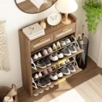 • Effortless Versatility – Perfect for entryways. hallways. living rooms. or porches. this slim shoe organizer cabinet offers a space-saving design that elevates any room. Its space-saving silhouette and harmonious design balance rustic allure with modern refinement. transforming clutter into a refined statement of style.