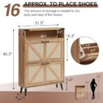 • 【Rattan Design】The ritual of coming home starts from the moment you enter the door. boho natural rattan shoe cabinet organizes your busy day of running around. The stylish and simple MDF.Vintage wood grain design are integrated into this shoe cabinet. it can be perfectly matched with your home space.Tapered legs add refined style and provide elevation to deter dust buildup.