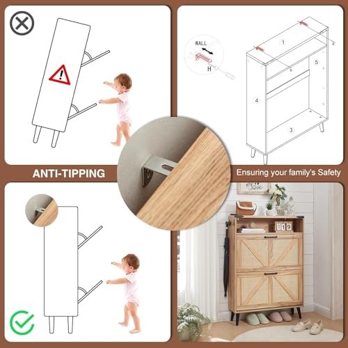 • 【Stable Structure】9.4 inches in depth. The shoe cabinet is thin enough to fit even in a narrow hallway.The anti-tipping kits can prevent injuries from furniture tip-over. this item should be securely fixed to the wall.