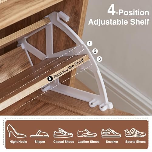 • 【Farewell to Shoe Piles】Keeps shoes handy but out of sight. Your guests will never guess that you have 16 pairs of shoes stored in this shoe cabinet it is that smart-looking. Two flip drawers and each with two layers. Need storage for ankle boots and high heels? You can easily adjust the space in the shoe compartments by moving or taking away the dividers.