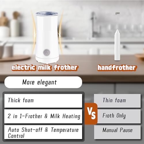 Simple Milk Frother. 2 in 1 Milk Steamer and Frother. Electric Milk Steamer. Milk Warmer and Hot Milk Foam Maker for Latter. Macchiato. Cappuccinos (White)