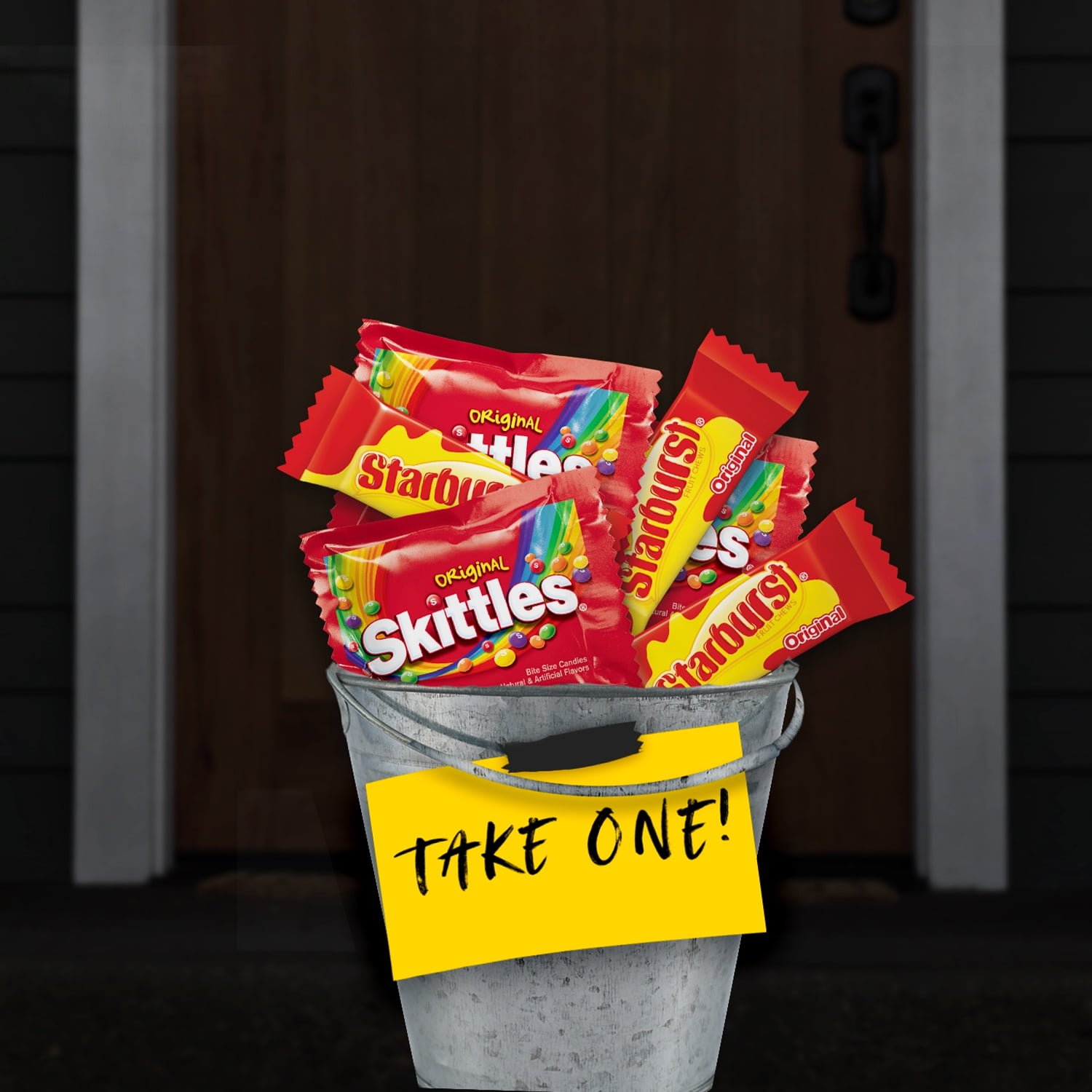 | Fabric Property | – Great for Halloween trick-or-treaters. school lunches or snacks on-the-go Individually wrapped Includes 70 pieces per box- Features fun. unpredictable flavours in every bite Includes Skittles Original. Skittles Sour Starburst Original and Starburst Favourite Red – Skittles & Starburst Candy Variety Pack contains a selection of bite-sized chewy candies that are a favourite among kids of all ages |