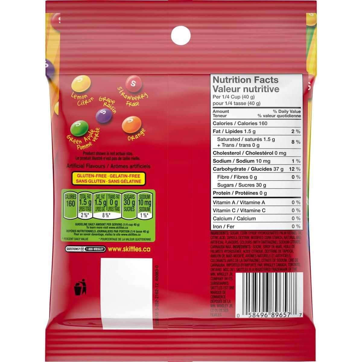 | Fabric Property | – Package includes 191g sachet of Skittles Original Fruity Candy – Bite-size. colourful chewy candies. – Taste the Rainbow—Original bold fruit flavours include orange. lemon. green apple. grape. and strawberry. |