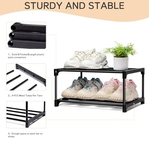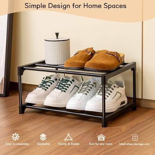 Small Shoe Rack Stackable Shoe Rack Small 2 Tier. Black Shoe Racks Storage Organizer. Durable Shoe Stand Metal Shoe Rack for Narrow Space Closet Entryway Hallway