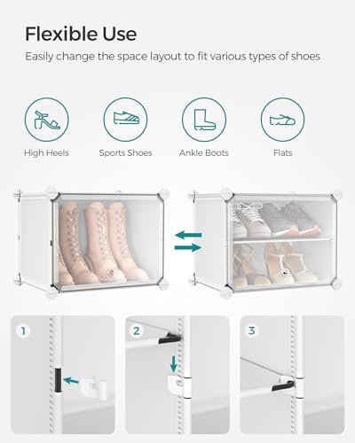• [DIY for Versatile Uses] Configure this storage unit in different ways. Make it have 2 or 3 separate rows. or even divide it into 2 small shelf units to organize shoes. bags. clothes. or toiletries in your entryway. bathroom. or any other desired space