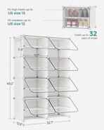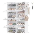 • [8-Tier Large Capacity] This versatile plastic shoe storage organizer. able to accommodate up to 32 pairs of shoes. from high heels. boots. sneakers. casual shoes to slippers. Its space-efficient side hooks offer a handy spot to hang hats or dog leashes