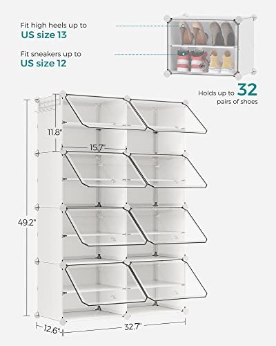 SONGMICS Shoe Rack Organizer. 8-Tier Shoe Storage Cabinet for Closet and Entryway. Holds 32 Pairs of Shoes. Adjustable. White ULPC034W01
