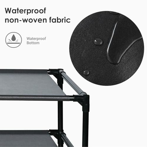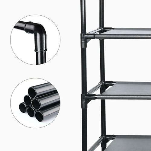 • STRONG AND DURABLE: Constructed from Sleek and sturdy iron pipes. high quality PP connectors. waterproof non-woven fabric tiers. this shoe tower will last long.