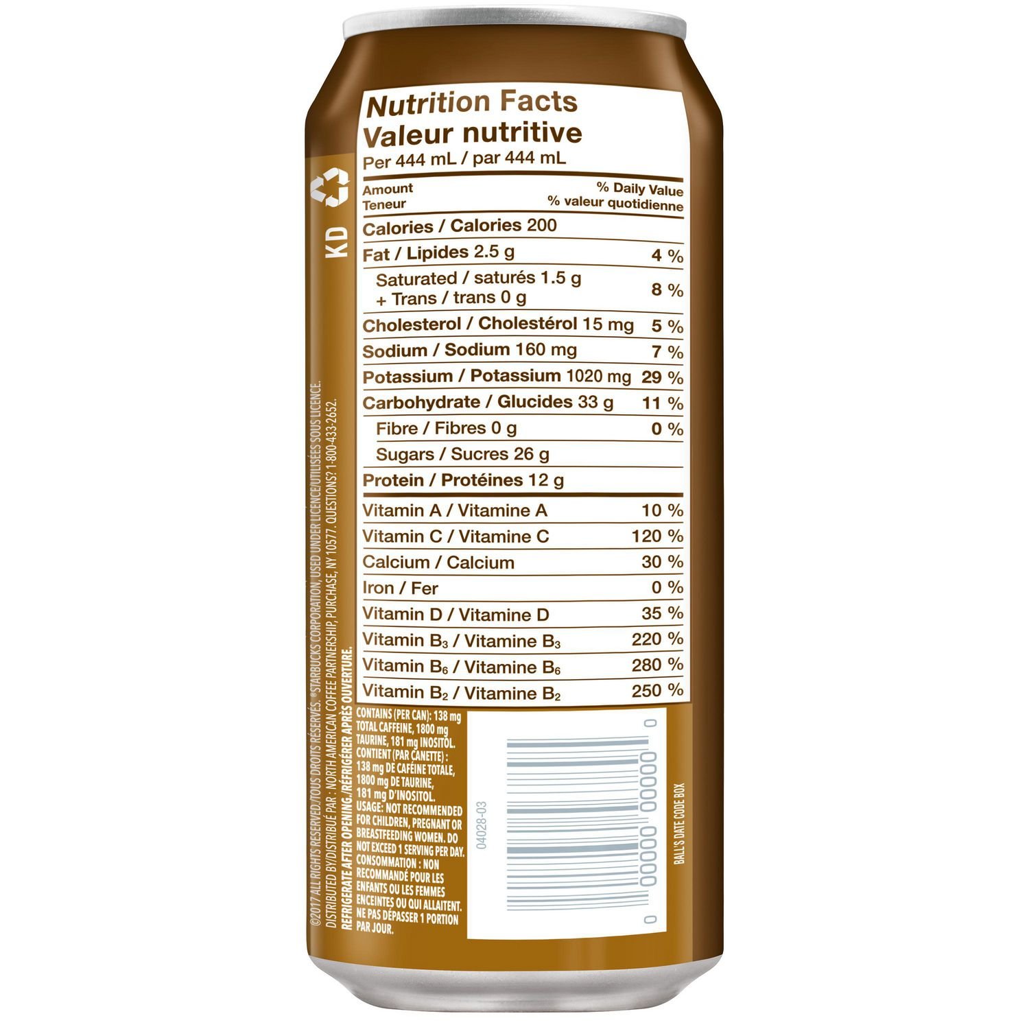 | Fabric Property | • Starbucks Doubleshot Energy Coffee Beverage is perfectly blended with rich. bold Starbucks coffee • A delicious Coffee + Energy Beverage. for on the go. • Enhanced with guarana. B vitamins. and ginseng |