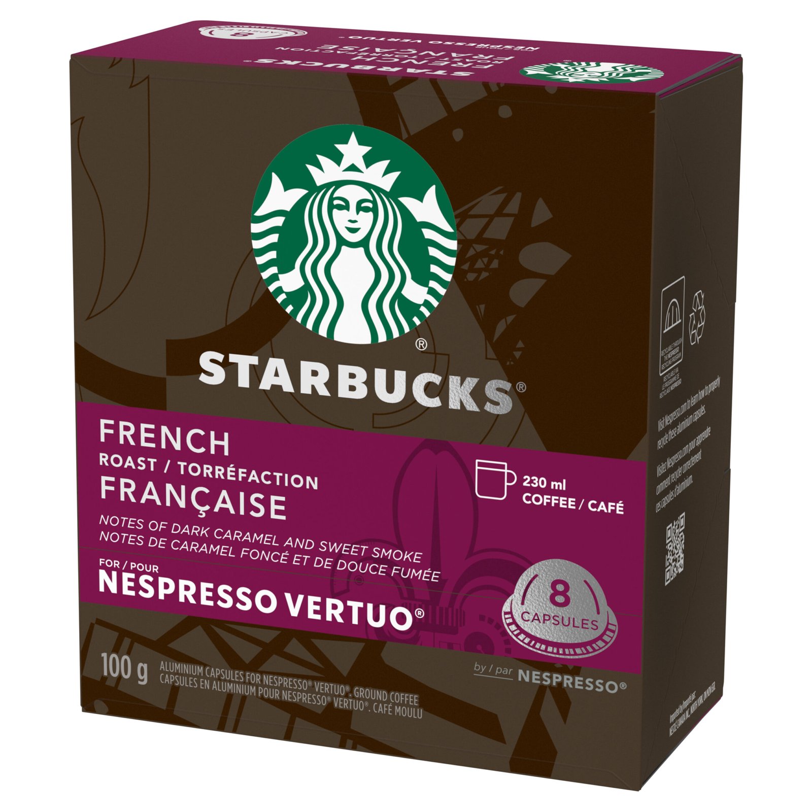 STARBUCKS French Roast For NESPRESSO VERTUO. Dark Roast. Notes of Dark Caramel & Sweet Smoke. Light-bodied. Low-acidity. Recyclable NESPRESSO Coffee Capsules. 100g