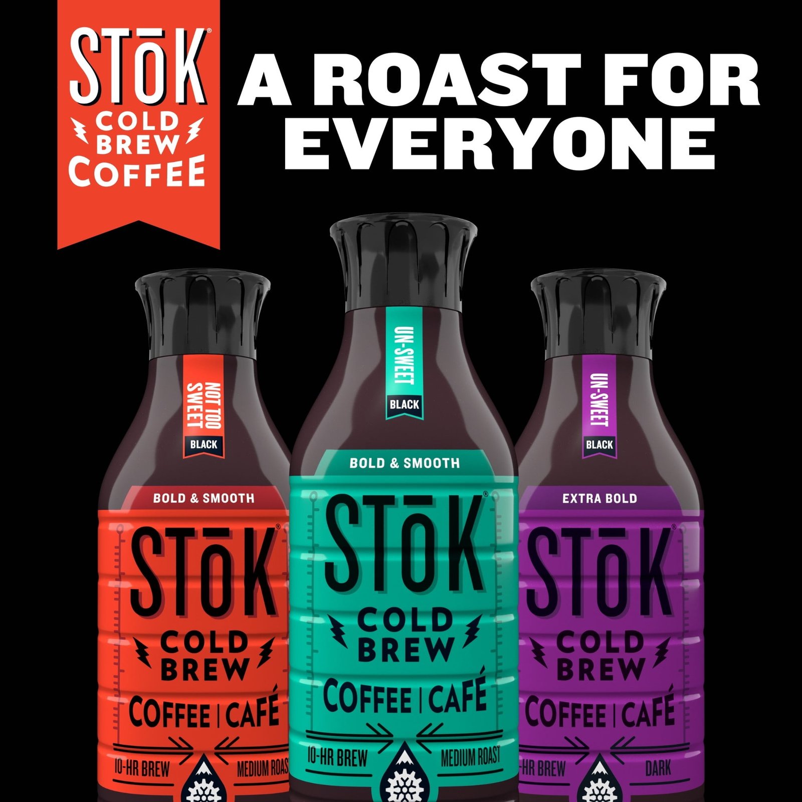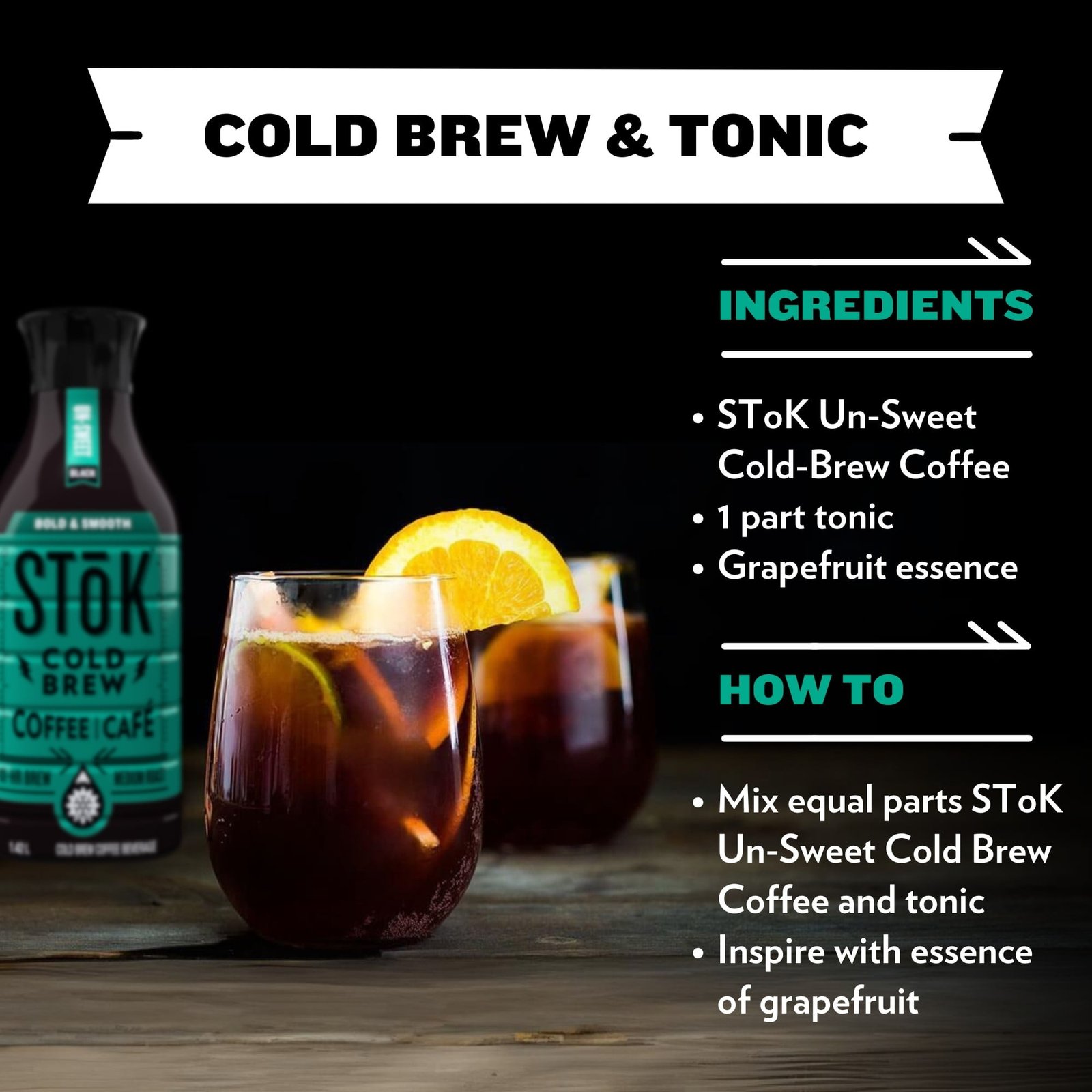 Take your favourite black cold brew coffee home with you in a larger 1.42L size. Bigger Bottle. but every bit as bold: Arabica based blend delivers a coffee-first flavour with no cream and no sugar. Just pure Stok-ness and majesticness.•100mg of caffeine per serving
