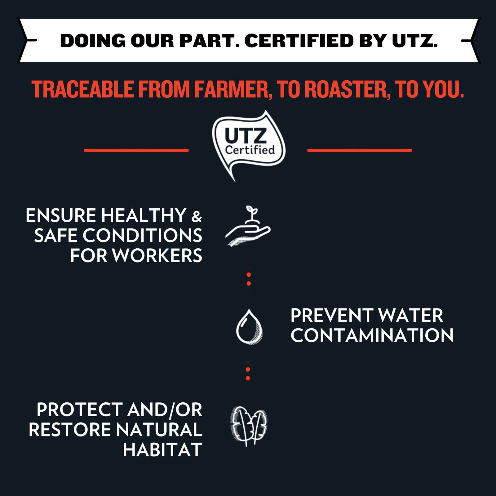 | Fabric Property | •100mg of caffeine per serving •Brewed low and slow for 10 hours •Coffee grown by UTZ certified farmers •Dairy Free •0g of sugar per serving •Kosher Certified |