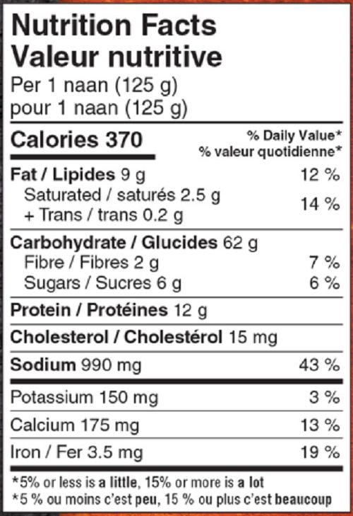 · Serving size 1 naan (125g)
