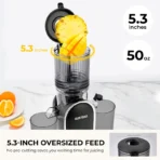 5.3″ Large Feed Opening – Insert whole fruits and vegetables without tedious pre-cutting.