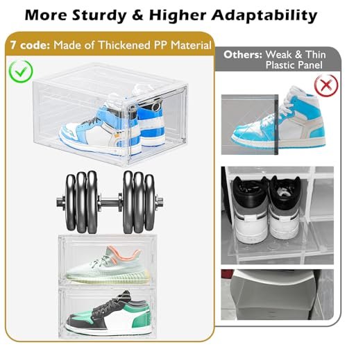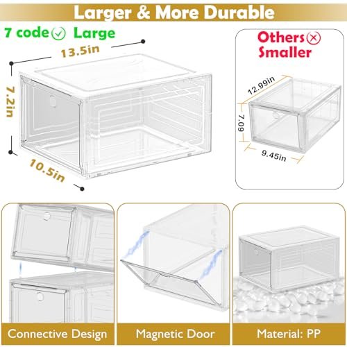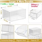- ✔Clear Shoe Boxes Stackable – Clear magnetic front door. stackable design. harder material. the shoe case provide you a more load-bearing multiple layers of shoe walls.No sliding.safe and stable. Stack easily on side and tops with pegs. you can connect them however you please.