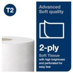 - Tork Advanced Mini Jumbo Bath Tissue Rolls offer the perfect combination of quality. performance and value^Large roll design ensures easy and intuitive maintenance. refilling and use while allowing for fewer refills and reduced labor^Rapid break-up capability is ideal for all septic systems and this toilet paper is 100% biodegradable^Eco Logo Certified. EPA Compliant. and made from 100 percent recycled fibers to provide environmental benefits^Can be used with Tork 465500. 55020A. 555028A. 5555200. and 5555290 Mini Jumbo Dispensers