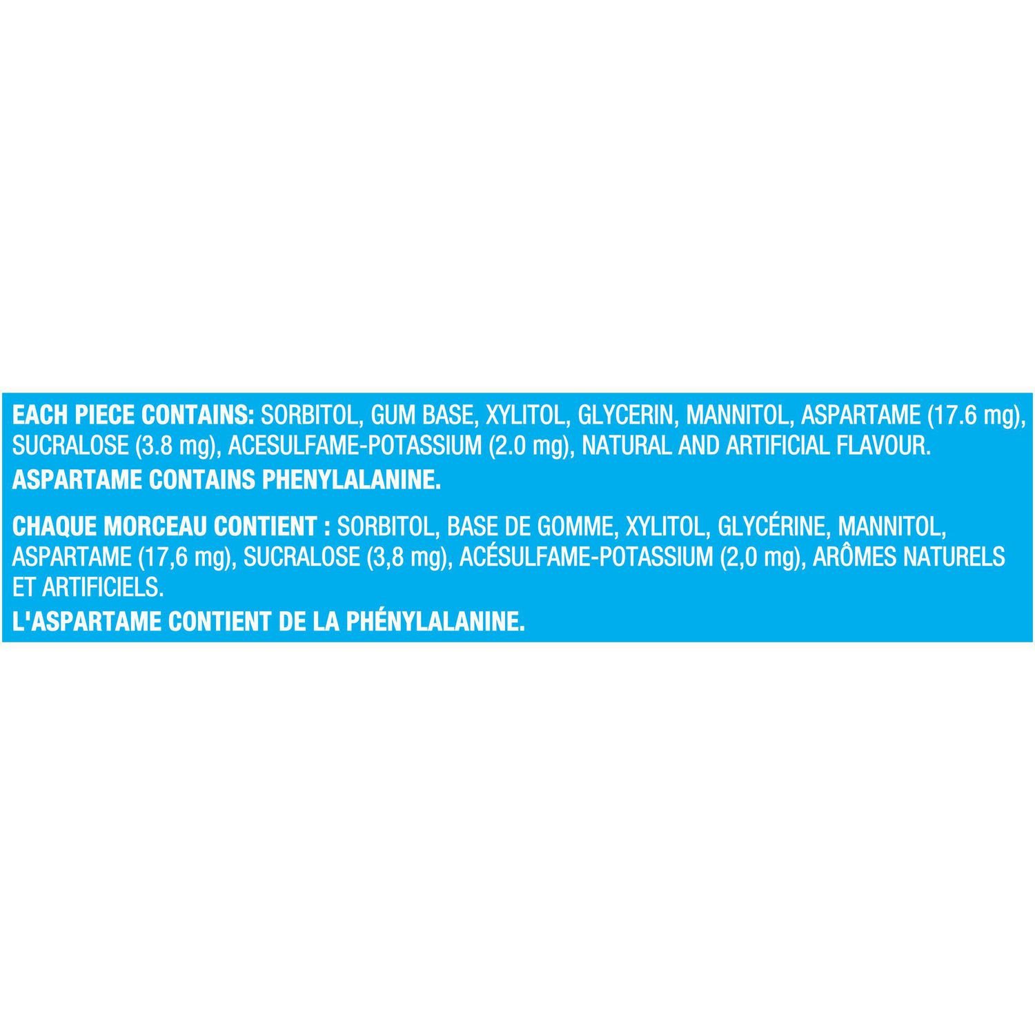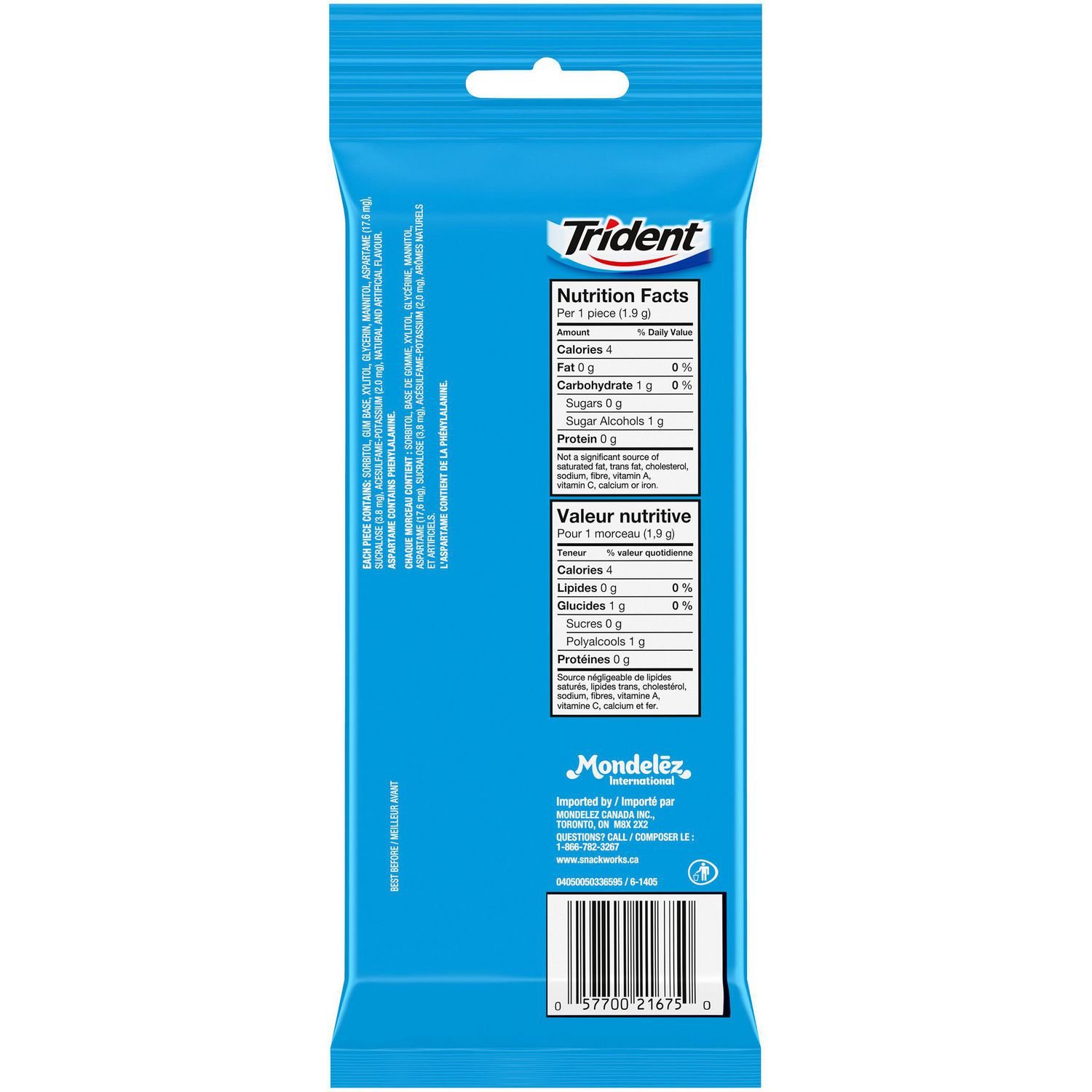 | Fabric Property | • Three packs with 14 pieces of Trident Peppermint Sugar Free Gum • Peppermint flavoured sugar free chewing gum • Trident peppermint gum helps clean and protect teeth while providing fresh breath • Made with xylitol • Chewing Trident gum after eating and drinking cleans and protect teeth |