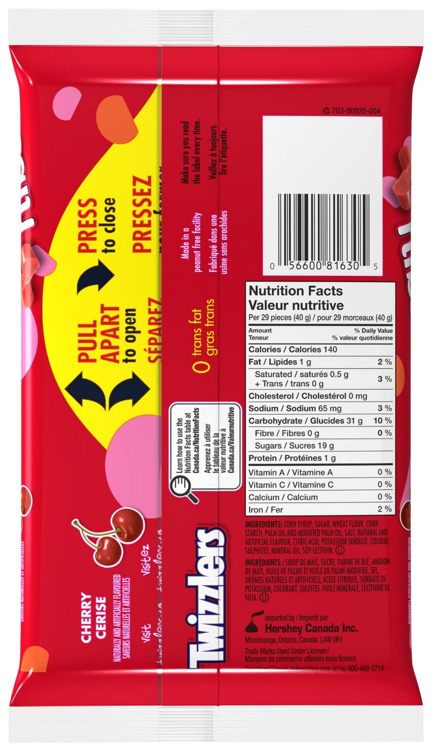 •One 400g bag of TWIZZLERS NIBS Cherry Candy.